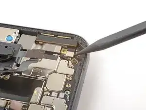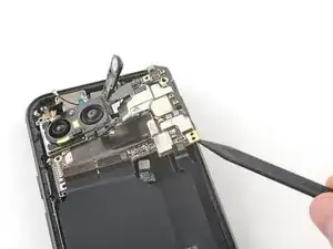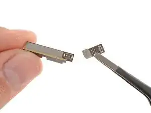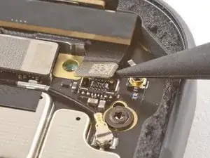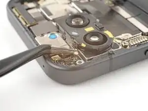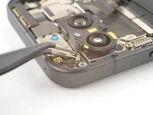 С помощью пинцета аккуратно отслойте кабель вспышки от металлической средней рамки.