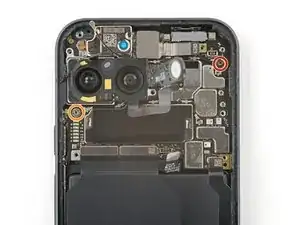 Используйте отвёртку Torx 3IP, чтобы открутить пять винтов, фиксирующих среднюю рамку и катушку беспроводной зарядки:
