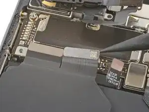 Используйте кончик лопатки, чтобы поддеть и отключить разъём аккумулятора.