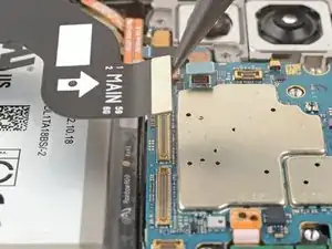 Используйте заострённый конец лопатки, чтобы поддеть и отключить катушку беспроводной зарядки от материнской платы.