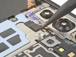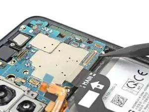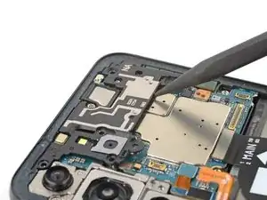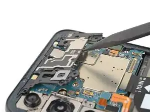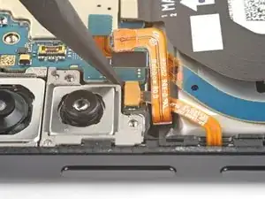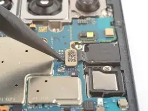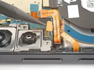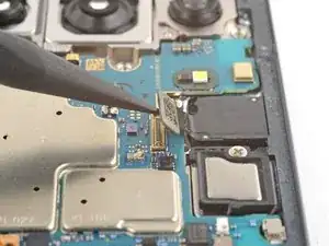 Используйте острый конец лопатки, чтобы поддеть и отсоединить правый пресс-разъём антенной 5G mmWave.