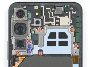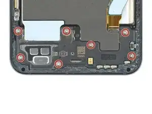 Отверткой Phillips удалите шесть винтов длиной 3.5 мм, фиксирующих катушку беспроводной зарядки.