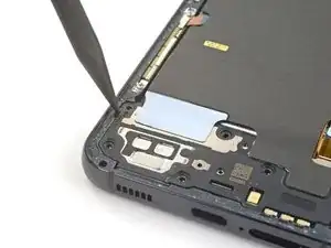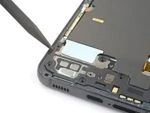 Используйте острый конец лопатки, чтобы поддеть и отсоединить пресс-разъём кнопок питания и громкости.
