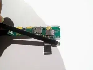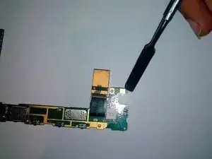Используйте лопатку, чтобы снять третий микрофон. Он расположен на крышке платы.