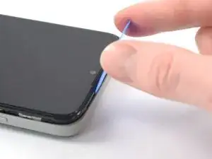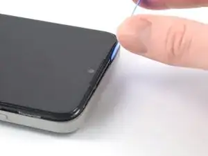 Направьте отвертку для вскрытия под острым углом вниз между задней крышкой и экраном.