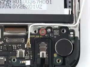 Используйте отвёртку с крестообразным жалом, чтобы открутить винт длиной 2,8 мм, крепящий модуль разъёма для зарядки.
