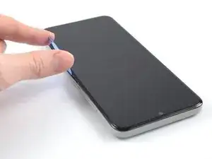 Проведите отверткой вниз по левому краю телефона, чтобы освободить пластиковые защелки.