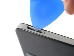 Вставьте отвертку для вскрытия под небольшой вырез в слоте для лотка SIM-карты.