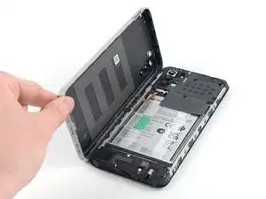 Пока не пытайтесь полностью снять заднюю крышку, так как она все еще подключена к телефону.