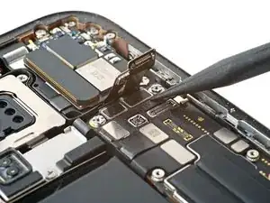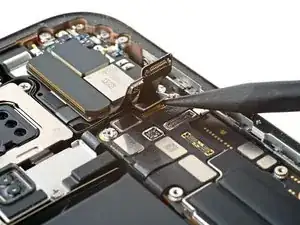 Концом лопатки подденьте и отключите разъёмы динамика уха и антенны 5G мм-диапазона.
