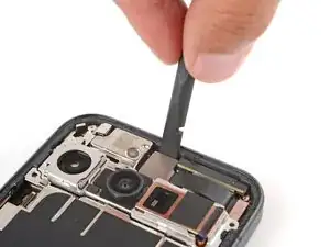 Используйте острый конец лопатки, чтобы поддеть и отсоединить пресс-коннектор передней камеры press connector.