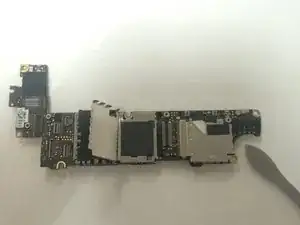 Используйте инструмент для вскрытия iFixit, чтобы выкрутить винты, фиксирующие плату, и подденьте плату лопатками, чтобы полностью извлечь её из iPhone (при подъёме платы потребуется некоторое усилие).