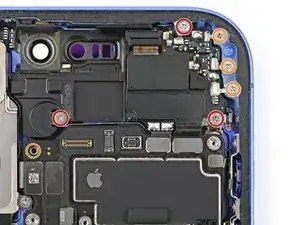 Используйте отвертку Phillips, чтобы выкрутить шесть винтов, удерживающих динамик для разговора: