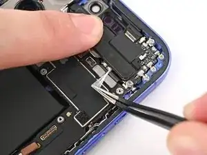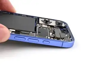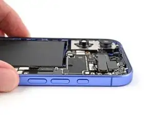 Тонкий кабель, соединяющий заднее стекло с телефоном, прямо рядом с кнопкой уменьшения громкости. Не вставляйте инструмент в эту область, чтобы не перерезать кабель.