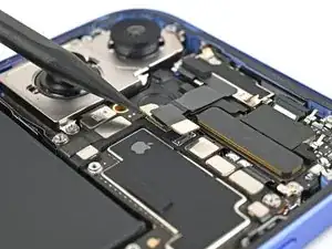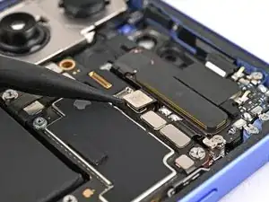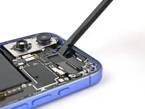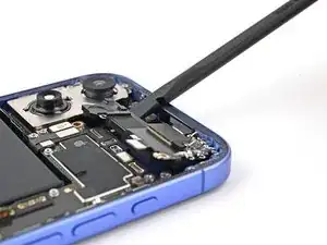 Вставьте плоский конец лопатки под верхний левый край антенны 5G mmWave, рядом с вырезом под фронтальную камеру.