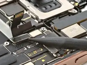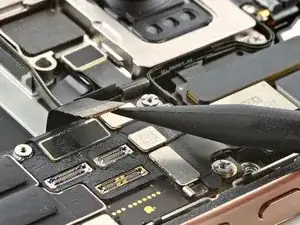 Используйте конец лопатки, чтобы поднять и отключить первый разъем задней камеры.