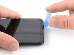 Проведите открывающей лопаткой по нижнему правому углу, чтобы освободить зажимы, удерживающие заднюю крышку на месте.
