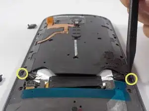 Этот винт удерживает кнопки питания и громкости, его не обязательно удалять. За кнопками громкости находятся 2 очень маленькие пружины, которые легко потерять, если удалить этот винт.