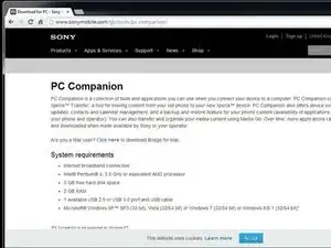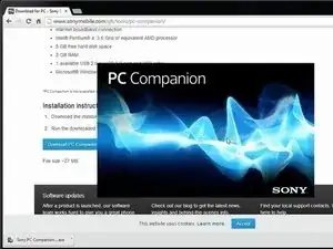 Загрузите и установите Sony PC Companion на ваш компьютер.