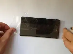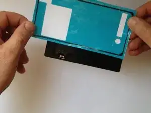 Перед установкой новой крышки необходимо очистить телефон от остатков старой клейкой ленты и установить новую (если запасная часть поставляется без двусторонней клейкой ленты).