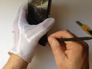 Используйте нож, чтобы сделать зазор для пластикового инструмента.