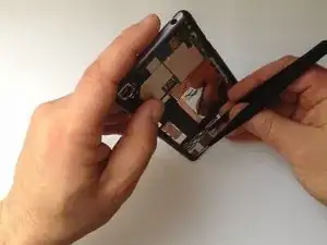 Острым концом пластикового инструмента осторожно отожмите модуль от корпуса телефона.