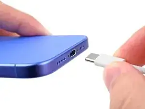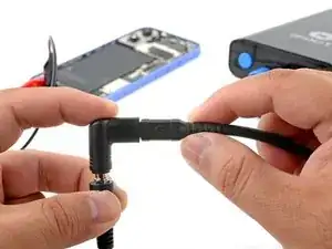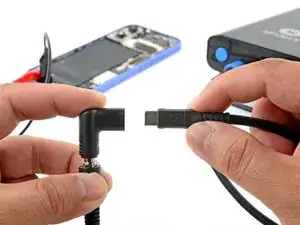 Подключите питающий USB-C кабель к USB-C уголку и подождите 90 секунд, чтобы клей размягчился.