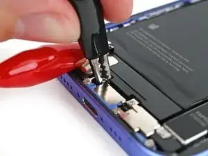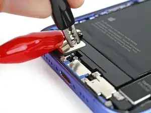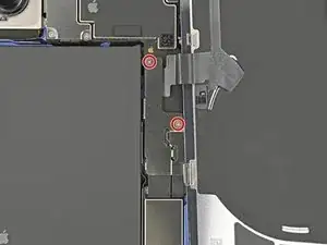 Используйте отвертку P2 с пятилобым жалом для удаления двух винтов длиной 7.7 мм с обеих сторон зарядного порта.