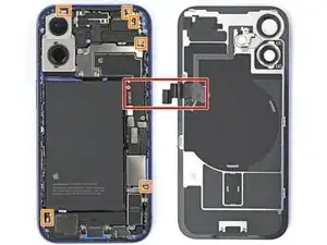 Используйте конец лопатки, чтобы оттянуть и отключить разъём катушки беспроводной зарядки.