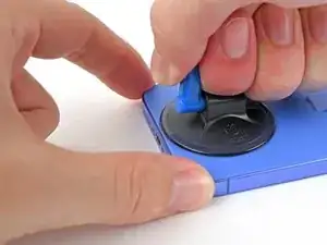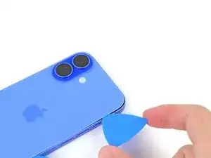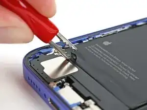 Используйте открывающую лопатку или чистый ноготь, чтобы поднять серебристую вкладку на нижнем крае батареи.