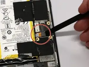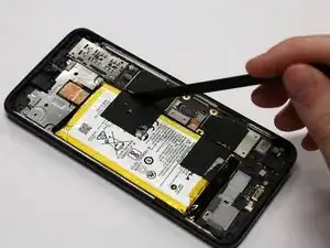 Используйте плоский конец лопатки, чтобы отключить аккумулятор от телефона.