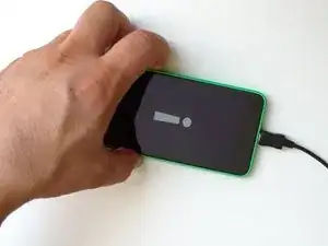 нажмите и удерживайте кнопку уменьшения громкости и подключите зарядное устройство.