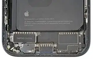 К верхним краям динамика и Taptic Engine приклеен пластиковый буфер.