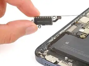 Используйте кончик лопатки, чтобы приподнять и отключить разъем Taptic Engine.