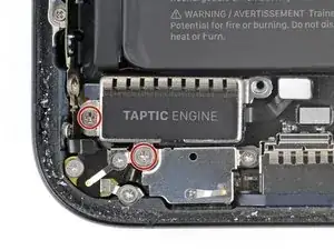 Используйте отвертку Phillips #000, чтобы удалить два винта длиной 2 мм, удерживающих Taptic Engine.