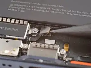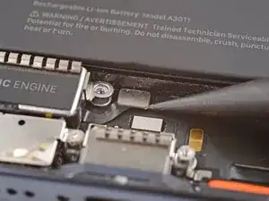 Используйте отвертку P2 с головкой пенталоб, чтобы удалить два винта длиной 7 мм по обеим сторонам порта зарядки.