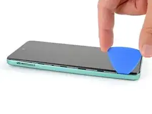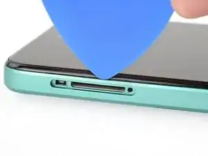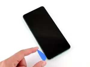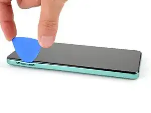 Установите открывающую лопатку вертикально вниз и проведите ею вдоль левого края, чтобы начать отщелкивать заднюю крышку.