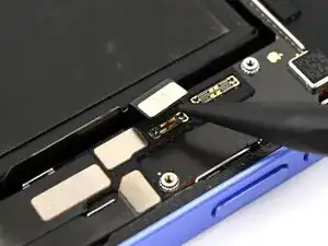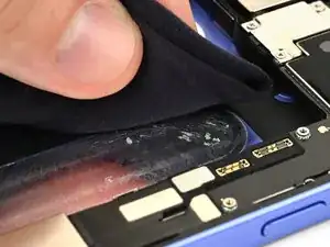 Используйте лопатку или палец, чтобы отключить аккумулятор, чтобы защитить iPhone во время остальной сборки.