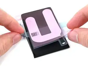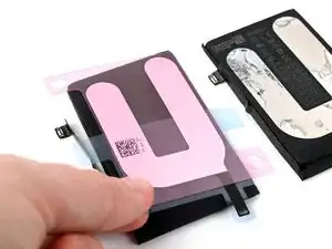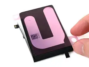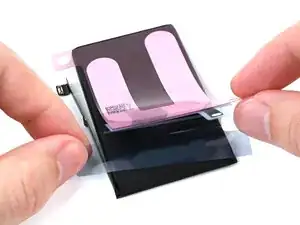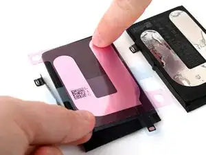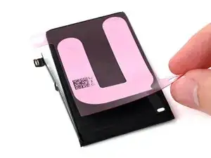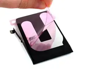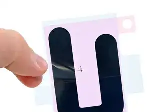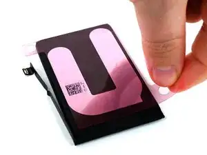 Снимите подложку со стороны iPhone на клейкой ленте аккумулятора.