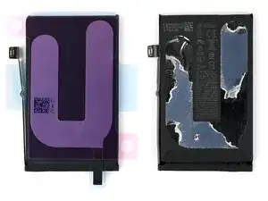 Разместите старый аккумулятор с клеевой стороной вверх рядом с новым аккумулятором. Приложите новую клейкую ленту к новому аккумулятору, чтобы увидеть, как её нужно нанести.