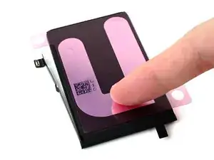 Используйте палец, чтобы обернуть проводящий язычок вокруг передней части аккумулятора и прижать его на место.