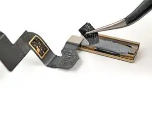 Используйте пинцет или пальцы, чтобы удалить старую клейкую ленту с кабеля антенны 5G mmWave и его мест на печатной плате.
