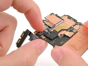 Оберните кабель вокруг его первоначального места на печатной плате и прижмите его, чтобы повторно приклеить обе стороны.