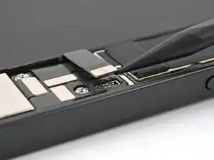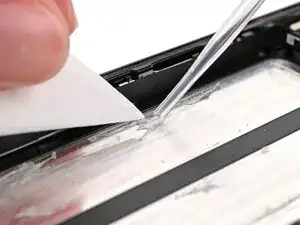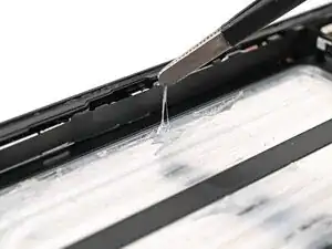 Используйте пинцет, чтобы отлепить крупные участки остаточного клея от рамы iPhone.
