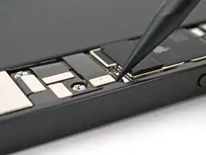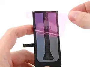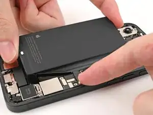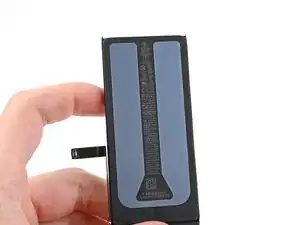 Держите батарею над её посадочным местом в iPhone и подключите нажимной разъём батареи.