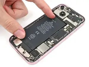 Держите батарею над её местом в iPhone и подключите её соединитель.