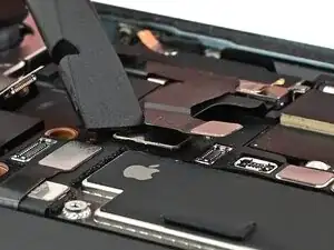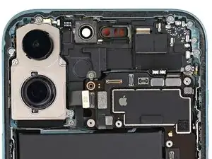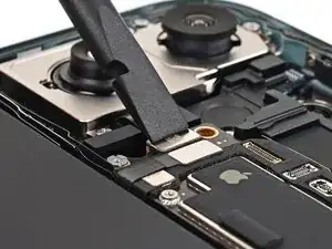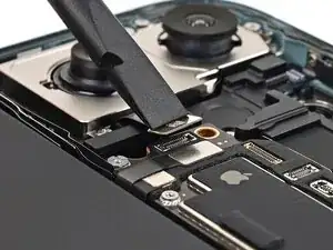 Используйте палец или лопатку, чтобы подключить два разъема сборки фронтальной камеры, расположенные в верхнем левом углу логической платы.