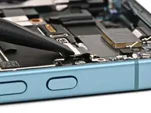Шаги по повторной сборке динамика разговорного устройства в iPhone 16 Plus.