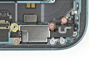 Шаги сборки основного микрофона в iPhone 16 Plus.
