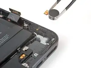 Поместите мотор вибрации в его углубление так, чтобы контактные площадки были обращены к верхней части телефона.